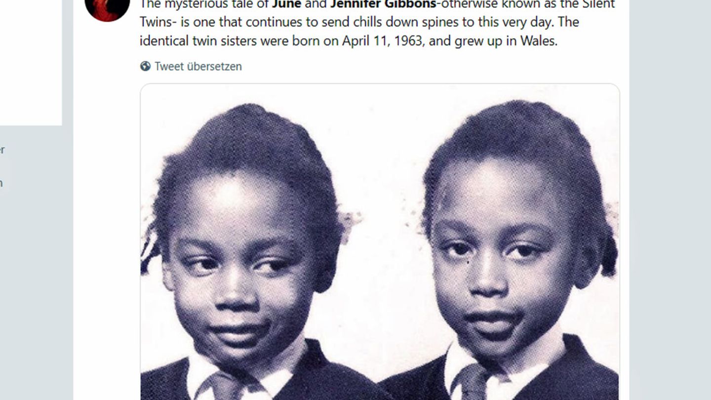 Als sie vier Jahre alt waren, sprachen Jennifer und June Gibbons nicht mehr mit ihren Eltern – sie reichten ihnen kleine Zettel. Viele Zwillinge führen symbiotische Existenzen, so, als wären sie zwei Teile eines Wesens. Die kleinen Gibbons trieben es auf die Spitze: Miteinander kommunizierten sie in einer Geheimsprache, die kein anderer Mensch verstand. Sie bewegten sich vollkommen synchron – wie zwei Marionetten, die von einem Willen gesteuert wurden. Jennifer soll June durch Augensignale kontrolliert haben. Beide bewegten sich extrem verlangsamt in perfekter Synchronizität. Auf ihre Umwelt wirkten sie wie Zombies. Und es war keine traute Zweisamkeit der Schwestern. Eben hingen sie noch untrennbar zusammen, dann schrien sie sich erbittert an, kämpften und zerkratzten sich ihre Gesichter.