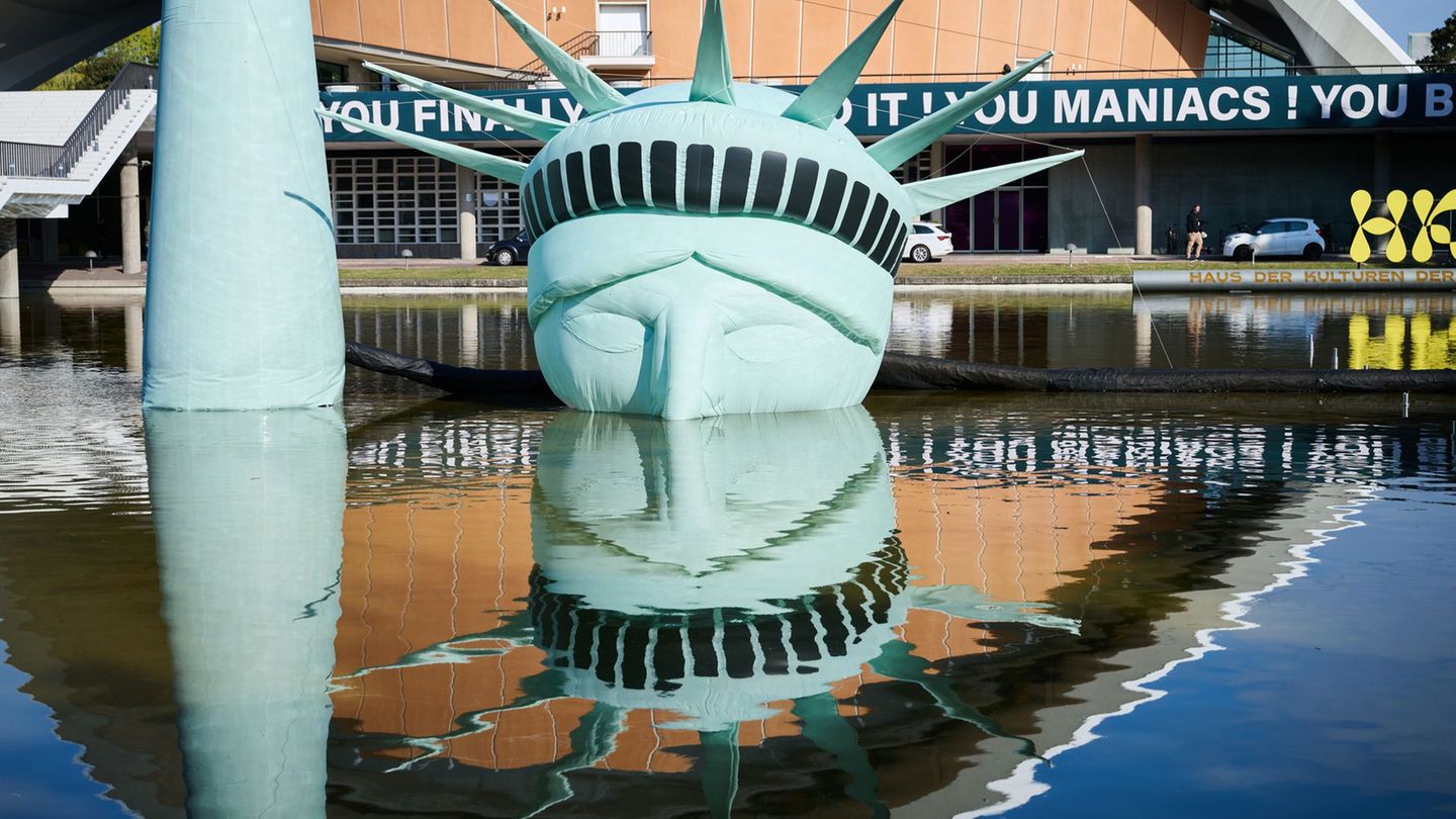 In der Ausstellung waren Hass-Parolen auf Postkarten und Exponate zwischen echtem Leben und Medienwirklichkeit zu sehen. Vor dem Haus der Kulturen der Welt ragten von der Freiheitsstatue nur noch Kopf und Arm aus einem Wasserbecken. Darüber prangen auf Englisch die Sätze: „Ihr habt es endlich geschafft! Ihr Verrückten! Ihr habt es vermasselt!“ Die Anspielung auf die Schlussszene des Filmklassikers „Planet der Affen“ (1968) nach dem Untergang der Menschheit empfing die Besucher des Projekts.