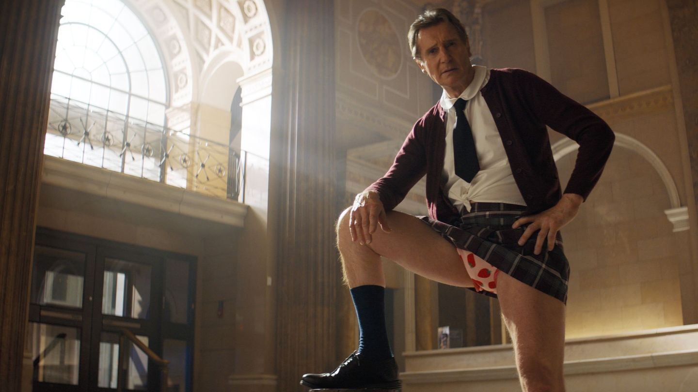 Dass Liam Neeson, der zuletzt viele grimmige Rachefeldzug-Thriller mit B-Movie-Charakter drehte, doch ganz witzig sein kann, ja vielleicht sogar unheimlich witzig – das deutete schon der viel beachtete erste Trailer zu „Die nackte Kanone“ an. Liam Neeson als Lieutenant Frank Drebin Jr. in Schulmädchenuniform auf Verbrecherjagd, alleine an dieses Bild wird man sich lange erinnern. Die Welt, in der die Neuauflage spielt, gleicht der des Vorgängers. Los Angeles also. Police Department. Lt. Frank Drebin wird für seine 1.000. Festnahme gefeiert. Kenner ahnen: Es handelt sich um den Sohn des berühmten Lieutenants Frank Drebin. Er ist nicht der einzige Nachkomme, der im Reboot auf den Spuren seines Vaters wandelt. Auch der Sohn von Captain Ed Hocken, ehemals von George Kennedy verkörpert, ermittelt im Hintergrund mit. Gespielt wird er von Paul Walter Hauser. Erfrischend knackige 85 Minuten dauert die Neuauflage, die erwartungsgemäß vollgestopft sind mit mal mehr, mal weniger gelungenen Slapstick-Sequenzen und sprachlichen Kalauern.